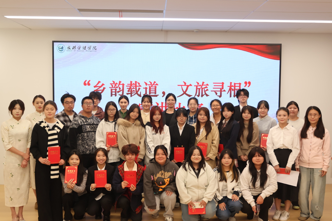 为推动习近平新时代中国特色社会主义思想融入高校思政教育,帮助青年大学生深化思想认知、增强文化自信与家国情怀,提升同学们宣讲水平,10月28日晚,旅游管理学院小红雁宣讲团在21-206隆重举行举办“乡韵载道,文旅寻根”宣讲比赛决赛,反响热烈。