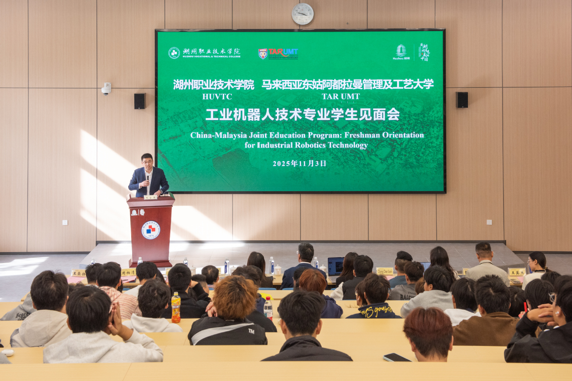 11月3日下午,马来西亚东姑阿都拉曼管理及工艺大学(以下简称“拉曼理工大学”)槟城分院院长卓月圓博士、副院长林凯筠博士来访我校,参加智能制造与电梯学院工业机器人技术(中马合作办学)专业2025级新生见面会。副校长何彦虎出席见面会并致辞,国际交流与港澳台事务办公室、教务处、智能制造与电梯学院等相关部门负责人、外方教师代表及2025级合作项目全体新生共同参会。