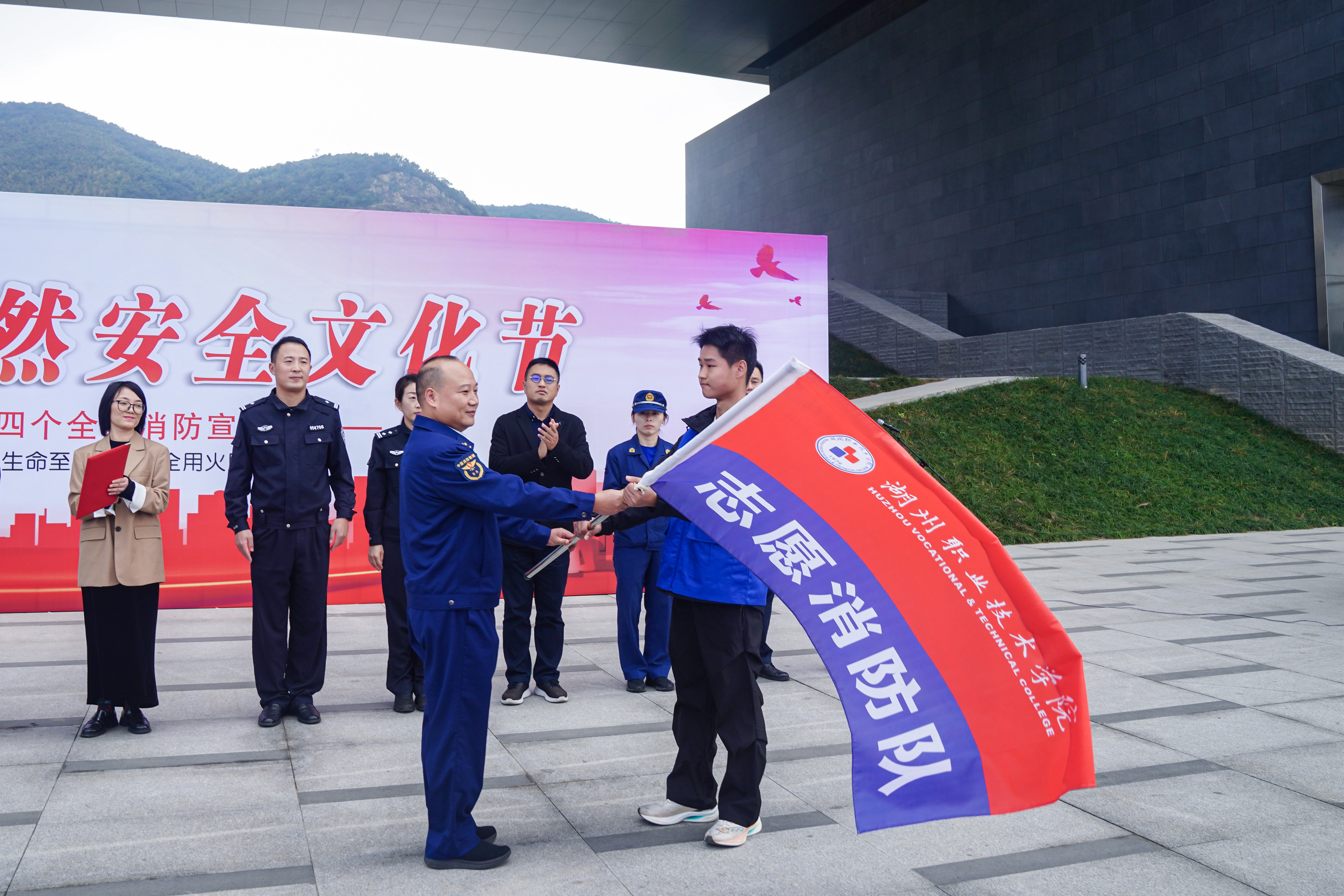 仪式现场,南太湖新区消防救援大队综合指导办公室主任辜文敬为学校志愿消防队授旗;学生代表还为与会嘉宾敬献了安全主题书法作品,以文化形式传递安全理念。活动期间除在校园内营造浓厚的安全教育宣传氛围之外,还组织策划开展了安全主题作品创作、安全素养提升、沉浸式安全体验、安全技能实操四大模块共计16个主题教育体验系列活动。