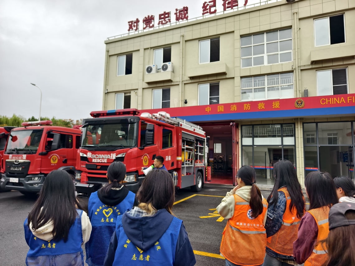 在全国消防日来临之际,为进一步弘扬“关注消防、生命至上”的理念,提升同学们的消防安全意识,11月8日,新能源工程与汽车学院绿色低碳服务队同智能制造与电梯学院前往南太湖新区龙溪消防站进行参观,实地探访了消防员的工作与生活。
