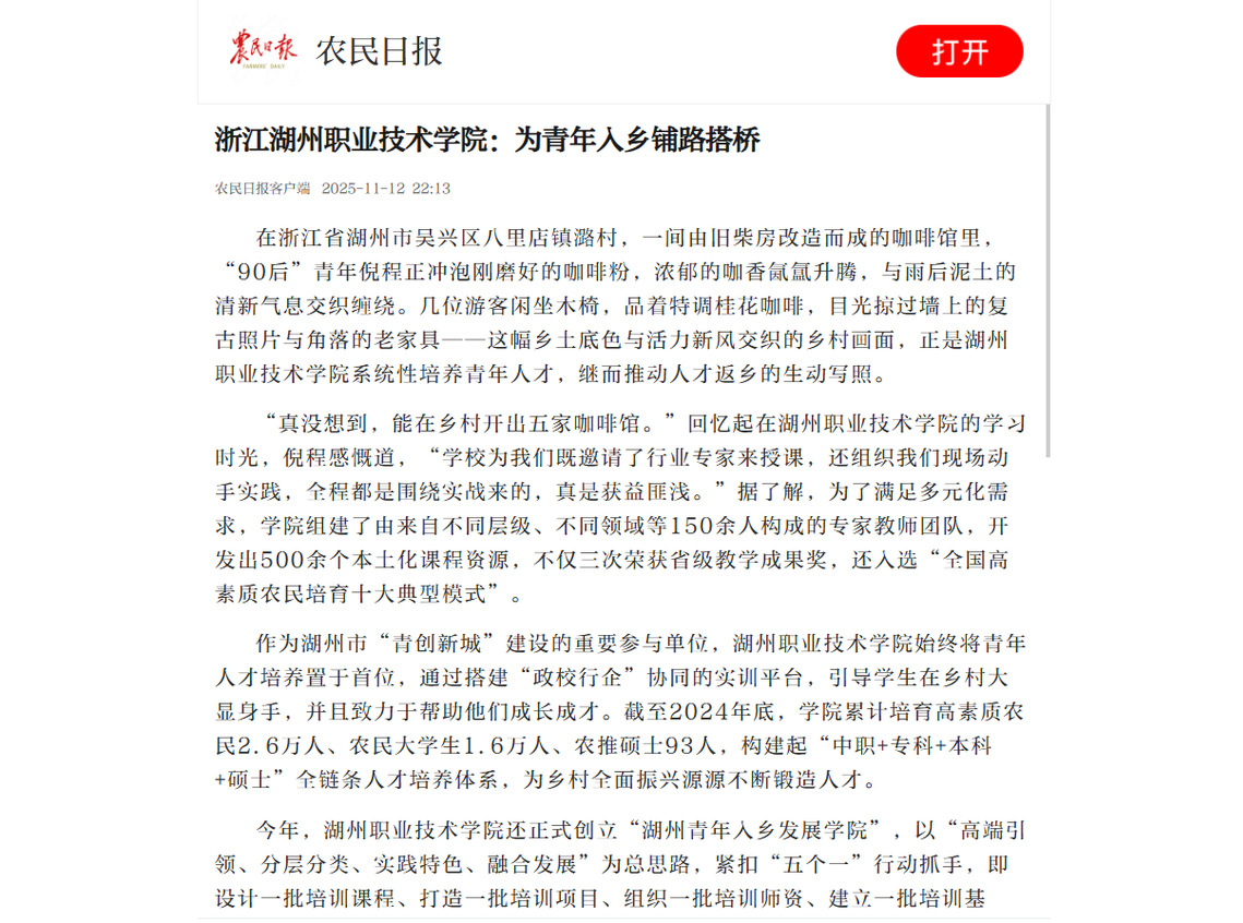 【农民日报】浙江湖州职业技术学院:为青年入乡铺路搭桥