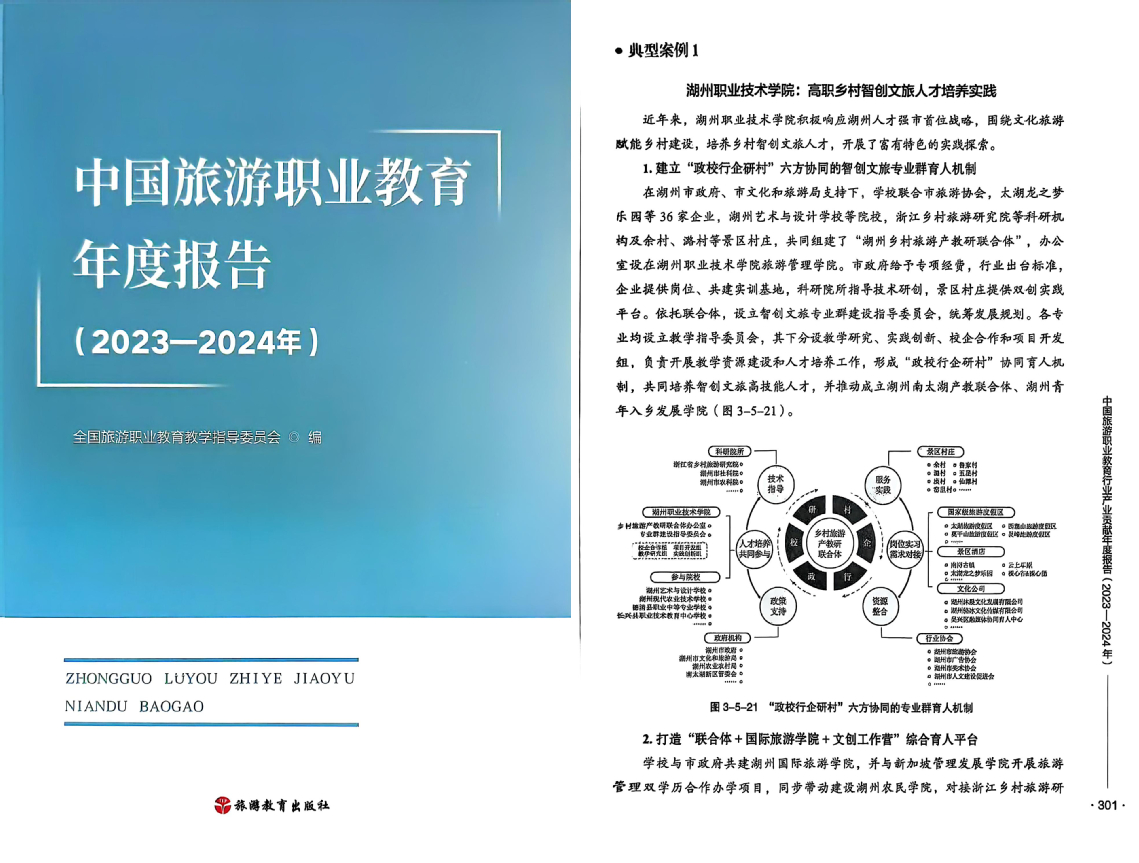 由全国旅游职业教育教学指导委员会编写的《中国旅游职业教育年度报告(2023—2024年)》于11月底正式发布,我校旅游管理学院协同艺术与时尚创意学院编写的教学案例——《湖州职业技术学院:高职乡村智创文旅人才培养实践》成功入选,成为全国旅游职业教育领域关注的焦点。