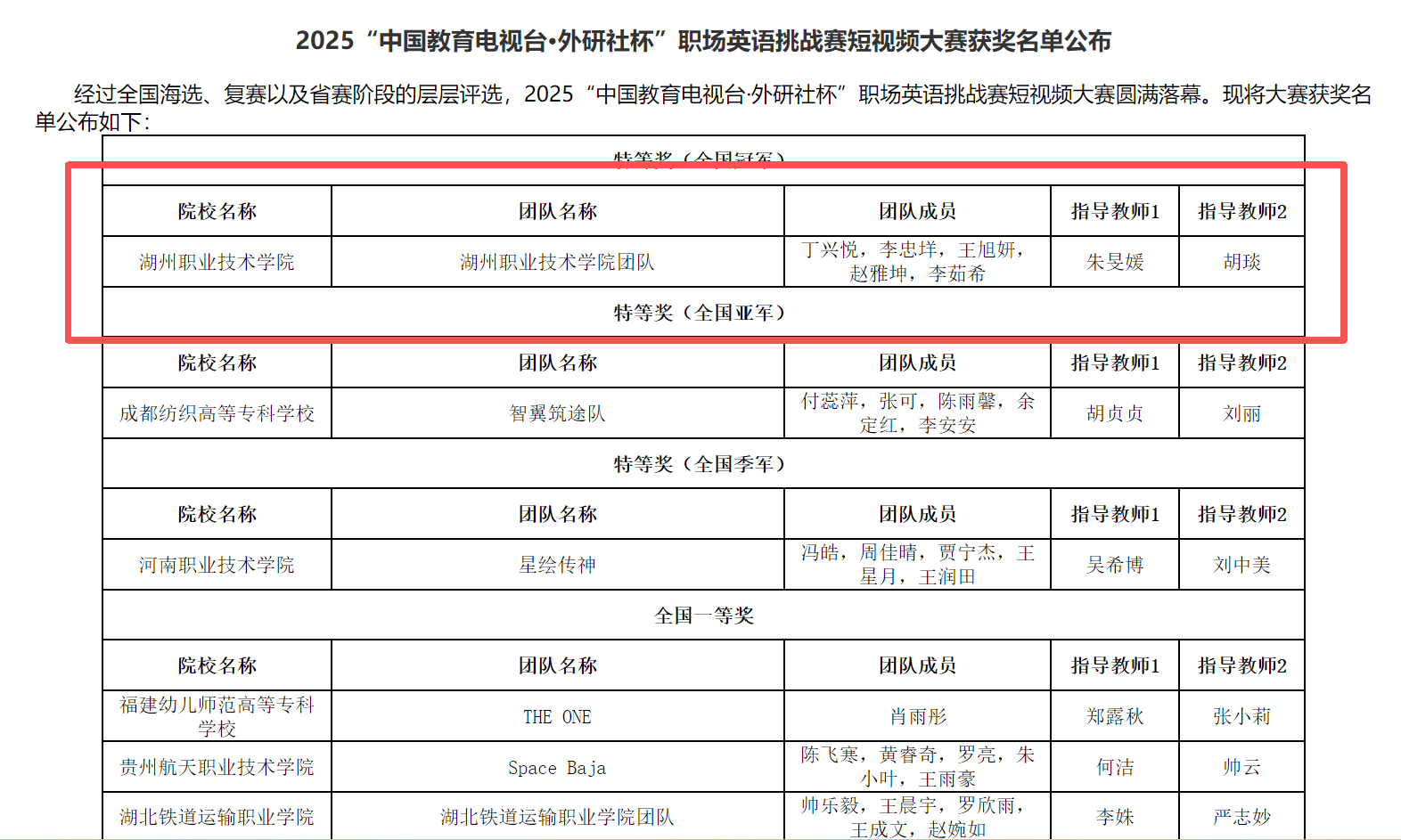 此次夺冠,是我校持续推进“以赛促教、以赛促学、以赛促创”育人模式的成果之一。它不仅展现了我校师生在外语应用、数字媒体创作与跨文化传播领域的扎实功底与创新能力,更体现了学校主动适应数字时代发展需求、着力培养高素质复合型技术技能人才的坚定步伐。(文/朱旻媛)