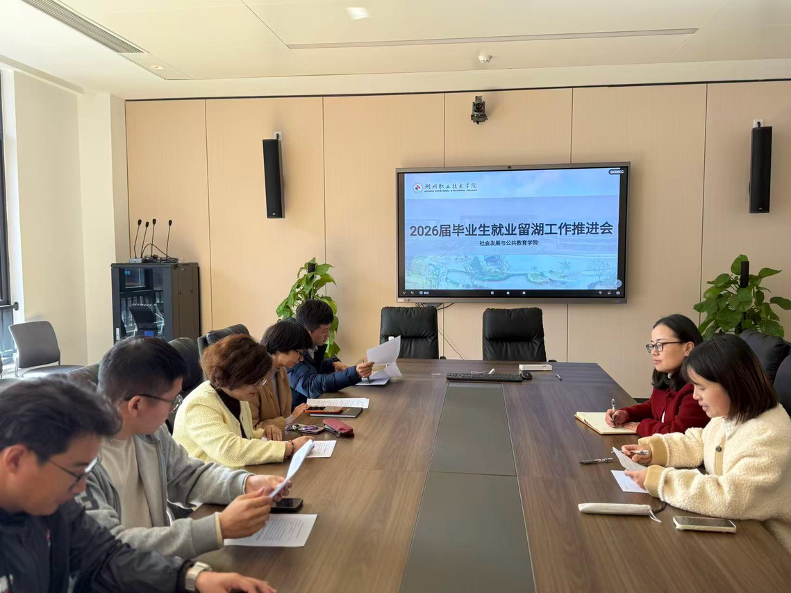 为扎实推进2026届毕业生就业留湖工作,护航毕业生高质量充分就业,12月4日,社会发展与公共教育学院在419会议室召开2026届毕业生就业留湖工作推进会,学院学生工作负责人、学工办辅导员、全体毕业班主任参加会议。