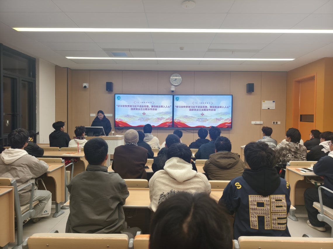 为深入学习宣传贯彻习近平法治思想、习近平文化思想和习近平总书记关于宪法的重要论述,认真实施法治宣传教育法,加强宪法宣传教育,弘扬宪法精神,维护宪法权威,推动宪法实施,12月4日晚,新能源工程与汽车学院开展“学习宣传贯彻习近平法治思想,推动宪法深入人心”国家宪法日主题宣传活动,为全体大一学生送上了一份兼具思想引领、知识普及与实践指导功能的“法治指南”。