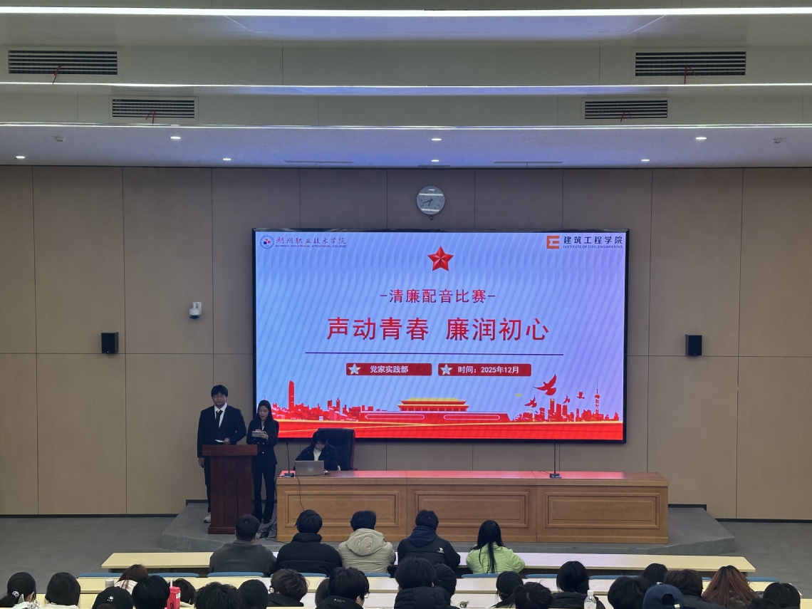 为营造风清气正的校园氛围,引导广大学生筑牢思想防线,12月7日晚,建筑工程学院“声动青春 廉润初心”清廉主题配音比赛在学院报告厅成功举办。