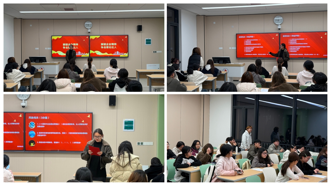 为深入学习贯彻党的二十届四中全会精神,推动理论学习走深走实、入脑入心,切实提升学生的政治理论素养,社会发展与公共教育学院于12月8日在16-209教室组织开展“解锁全会精神,争当理论达人”党的二十届四中全会精神专题知识挑战赛。