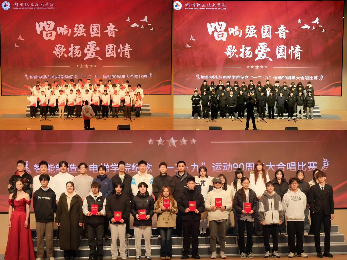 为传承和弘扬爱国主义精神,激发广大师生的爱国情怀与奋斗热情,12月8日晚,我校智能制造与电梯学院于大学生活动中心隆重举办“唱响强国音 歌扬爱国情”纪念“一二·九”运动90周年大合唱比赛。学院学生工作负责人、全体辅导员、2025级班主任以及600余新生共同参加了活动。