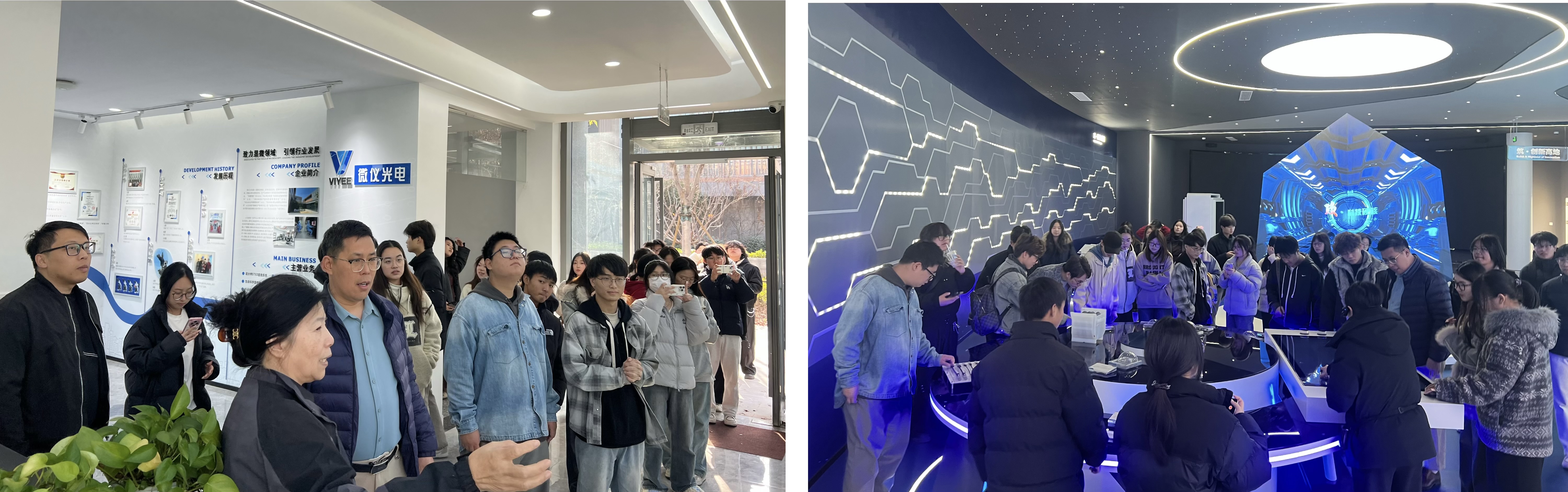 作为湖州“创谷经济”的“首位谷”,湖州西塞科学谷是全国首批“科创中国”创新基地,以“生态+科技+产业”为核心定位,已成功引进工业控制技术全国重点实验室、西安交大中子科学实验室等22个优质创新项目,推动10个科技成果落地转化,并与多所高校建立稳固的校企合作关系。在科学谷负责人的引导下,师生一行先后参观了全球首家“HOMM”品牌酒店、新能源电池研发中心、汉天下5G芯片展区等核心创新板块,全方位感受前沿产业的发展脉动。当走进微仪光电超分辨显微镜研发中心,近距离接触高精尖科研设备与创新成果时,同学们纷纷驻足探讨,深切体会到“科技创造就在身边”。“走出校园才能真切了解行业前沿动态,未来我们要更加刻苦学习,努力成为契合社会与时代需求的栋梁之才!”一名学生有感而发。