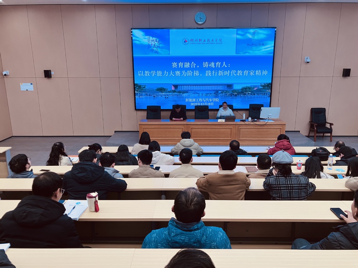为切实加强师德师风建设,提升教师队伍立德树人的责任感与使命感,12月18日,新能源工程与汽车学院特邀金华职业技术大学陆勇星教授,来校作题为“赛育融合,铸魂育人:以教学能力大赛为阶梯,践行新时代教育家精神”的专题讲座。学院全体教师参与学习。