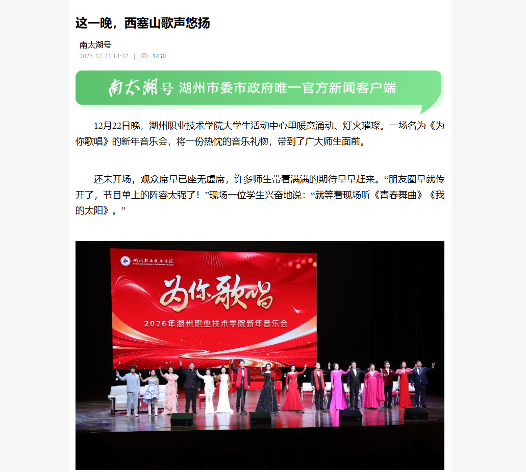 》报道学校举办《为你歌唱》的新年音乐会的相关新闻
