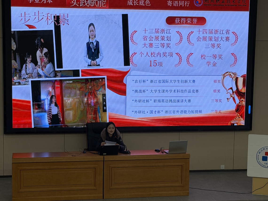 结合自身成长经历,汤一涵同学分别从学业规划、竞赛突围、社会实践服务、全面成方面等多个维度,分享了她的心得体会与实用方法,生动诠释了全面发展、追求卓越的青春姿态。在学业规划方面用“目标拆解法”破局。她建议同学们将大目标拆分为学期、月度、周度小任务,通过每日三件事清单:背100个单词、完成1篇精读、复盘错题,夯实基础。针对英语专业学习,她特别分享了提升口语、精读与泛读结合拓展视野的具体技巧。在竞赛突围方面从敢尝试到善总结,她回顾了自己首次参加挑战杯竞赛时因准备不足失利的经历,强调:“失败是最好的老师”。后续她通过组建跨专业团队、请教指导老师、反复打磨作品,最终在农行杯浙江省国际大学生创新大赛中斩获银奖。在全面成长方面建议平衡学业、实践、身心,作为班级心理委员,她坚持运动与阅读的自我调节方式,每日晨跑30分钟、睡前阅读1小时,保持良好状态。她还分享了担任志愿者、参与社区服务的经历,强调社会实践是课堂的延伸,能让知识真正活起来。在互动环节,与会同学就如何平衡学业与学生工作、如何寻找科研切入点等具体问题积极提问,分享者们给予了耐心细致的解答,现场气氛热烈融洽。