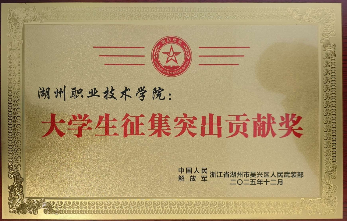 12月26日,在吴兴区2026年征兵启动仪式暨主题文艺演出上,我校被吴兴区人民武装部授予“大学生征集突出贡献奖”。校人武部、团委及百余名师生代表参加了本次活动。