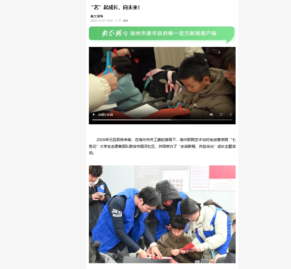 2025年12月31日《南太湖号》报道我校艺术与时尚创意学院联合市陌河社区,举办“岁启新程,共赴华光”成长主题活动的相关新闻