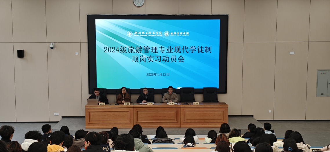此次动员大会的召开,不仅明确了2026年旅游管理专业现代学徒制顶岗实习的各项要求,更坚定了同学们的实习信心,筑牢了安全防线。接下来,旅游管理专业将持续跟进学生实习动态,做好校企协同服务,助力全体现代学徒制实习学生在岗位上锤炼本领、收获成长,圆满完成实习任务。(文/曹苏杭)